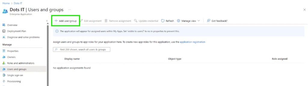 9. Make sure you added all the relevant users which you would like to have access to Dots and press Assign.