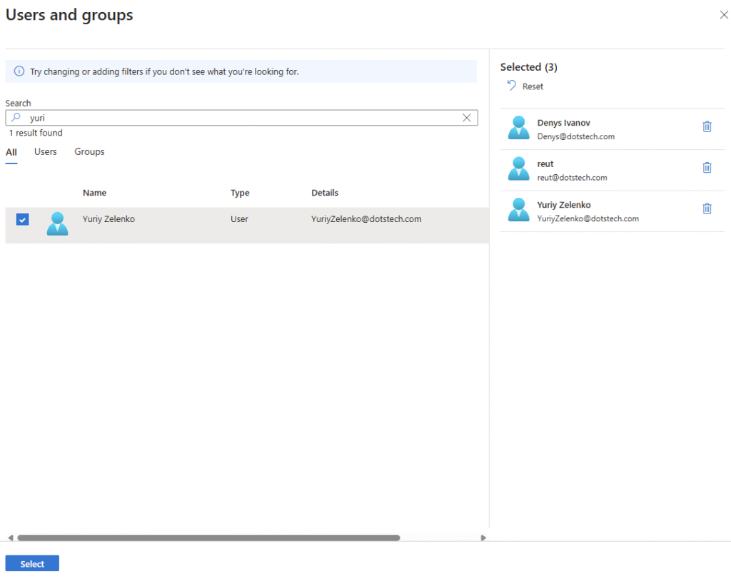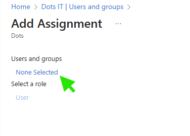 Note: the users selected should have a dots user set with the same email address as set in Entra.