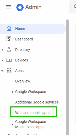 3. Open Web and Mobile Apps. Click “Web and mobile apps”.
